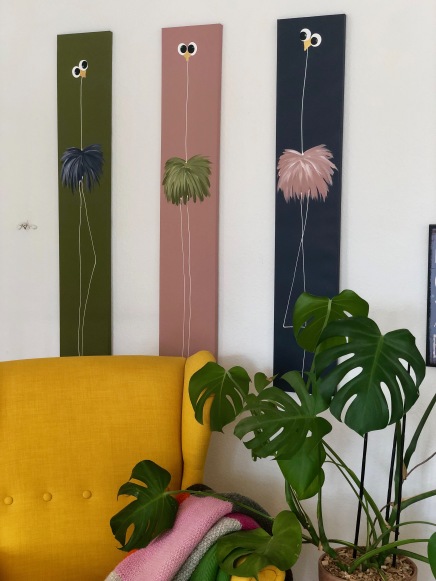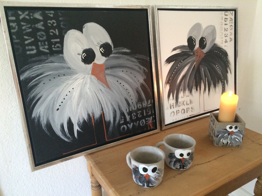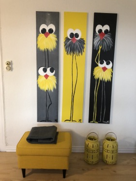 Så lad dig inspirere herunder, forelsk dig i de skønne farver og frække fugle og send mig en mail med dine ønsker.