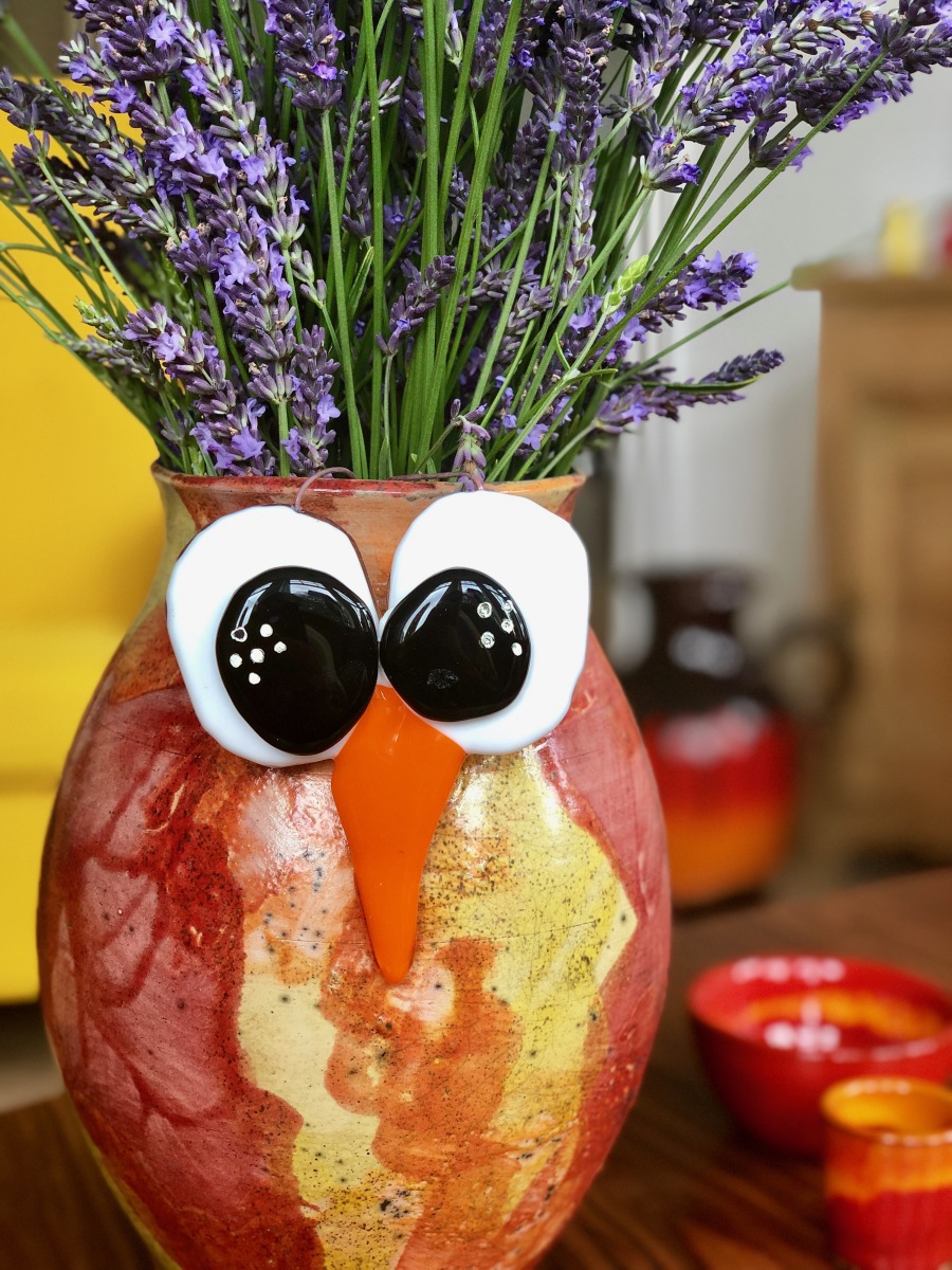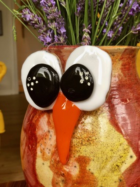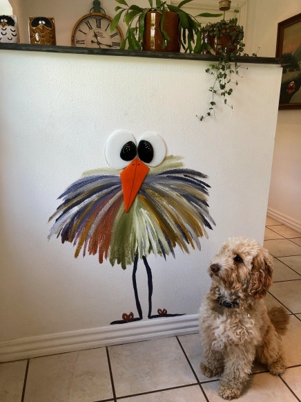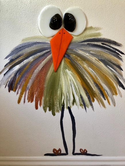 Nr 147 Fugl direkte på væggen med søde, levende glasøjne