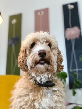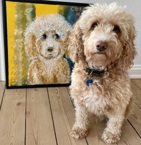 Nr. 154 maleriet af min hund Felix måler 50x50. Skal din bedste ven også have sit eget portræt?