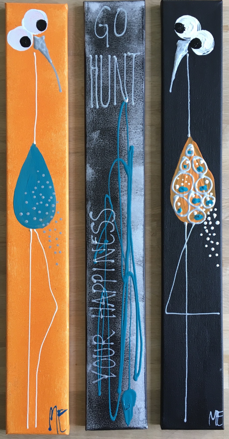 Hvert lærred måler 25X60 cm.