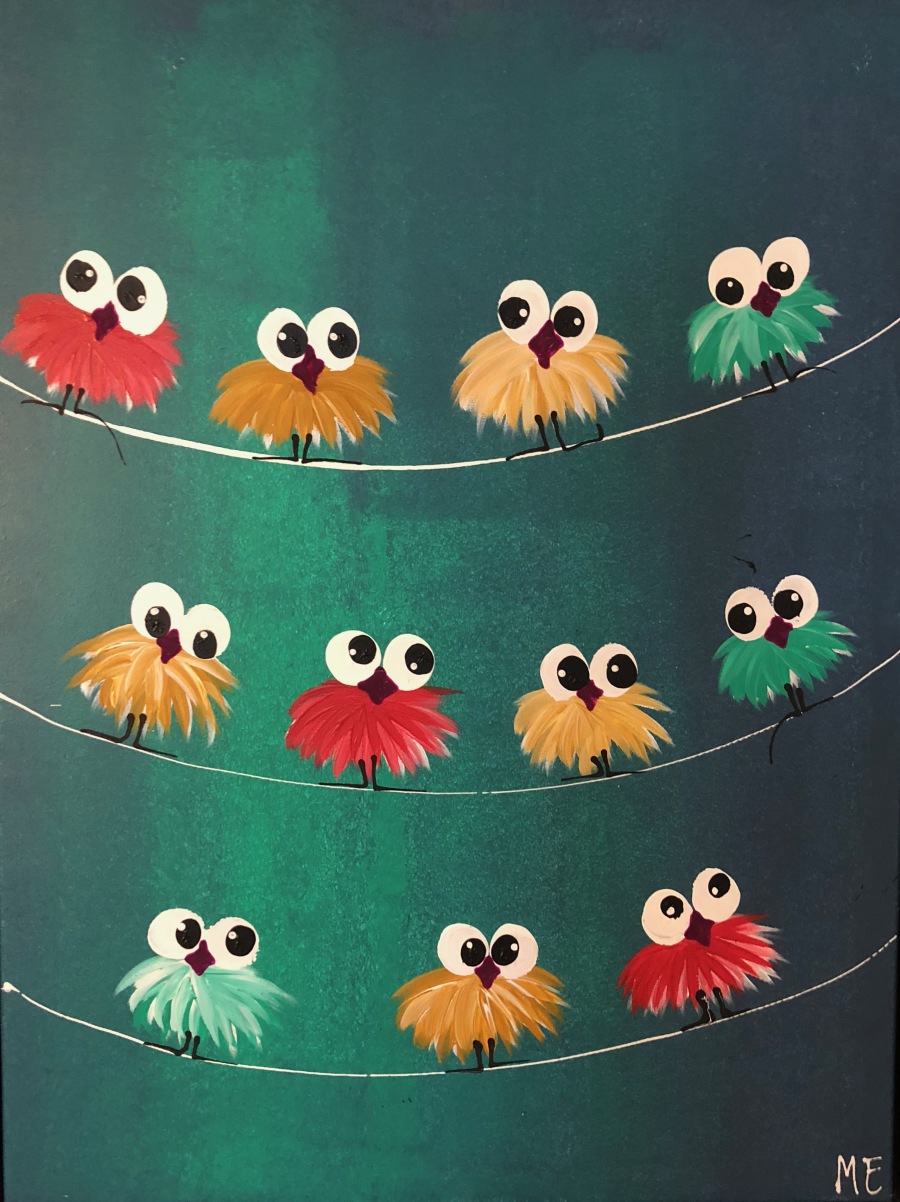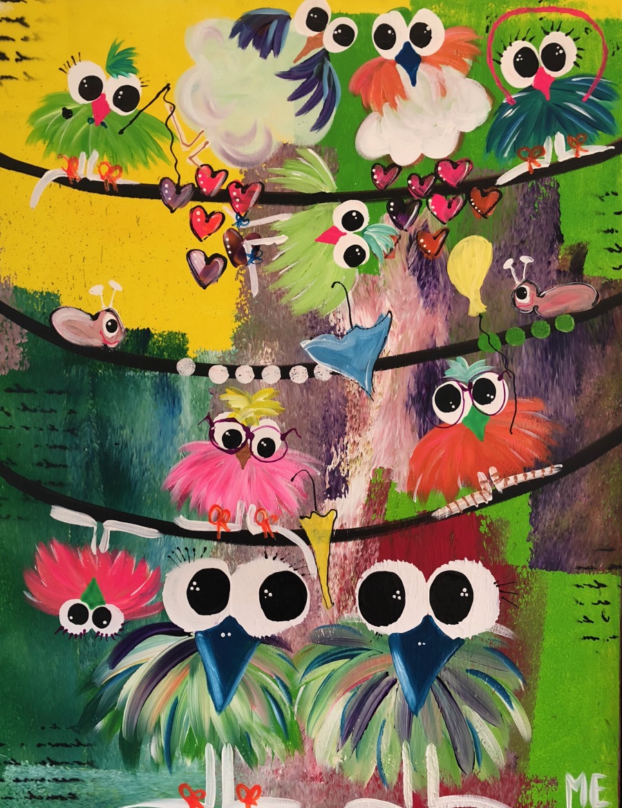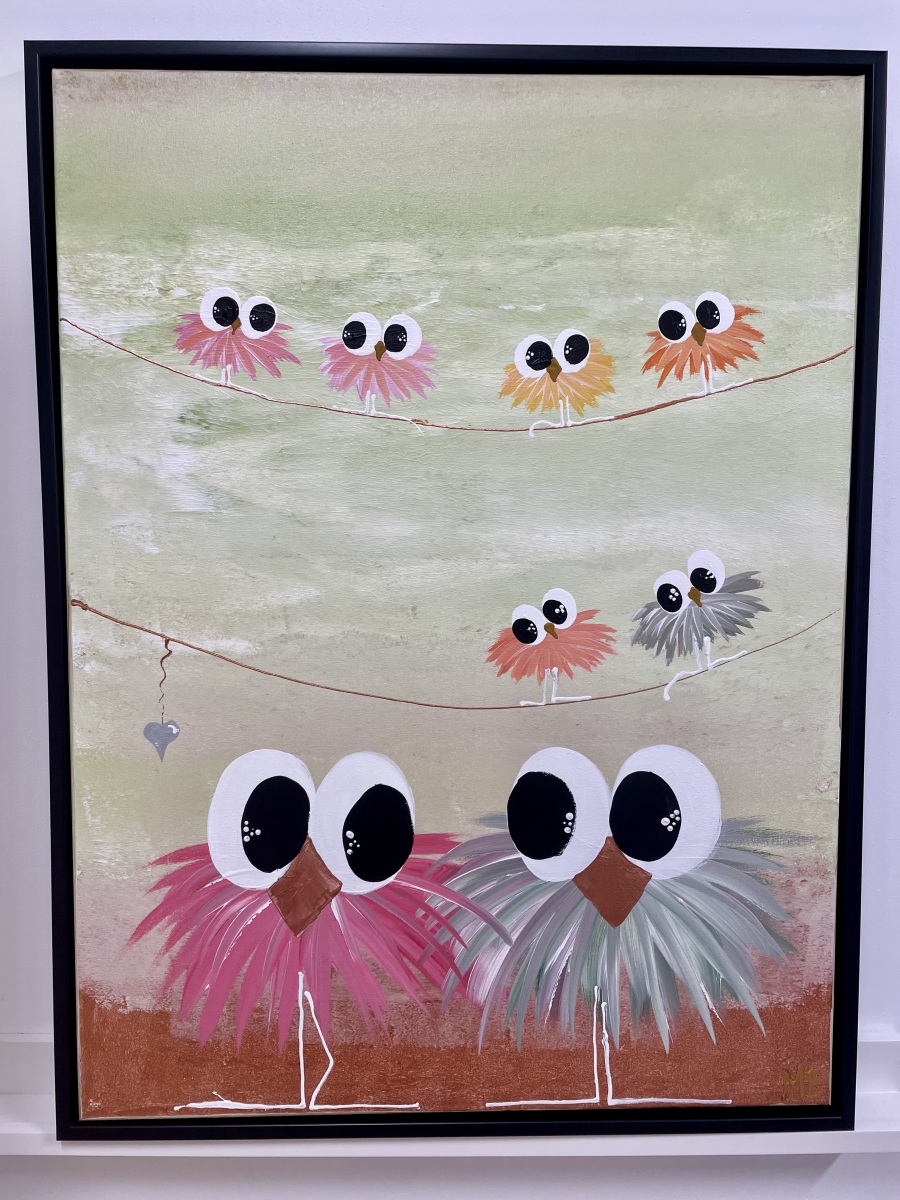 Nr 86 Skønt maleri 60X80 Fugle på snor