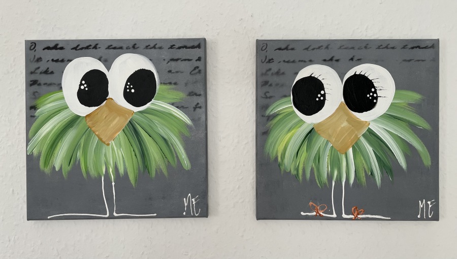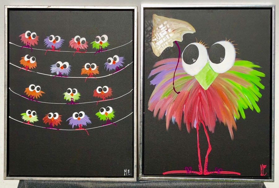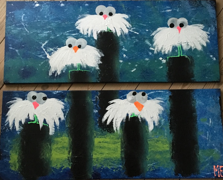 Nr 71, 120 60x80 "fugle på snor" og "lonely and looking up"