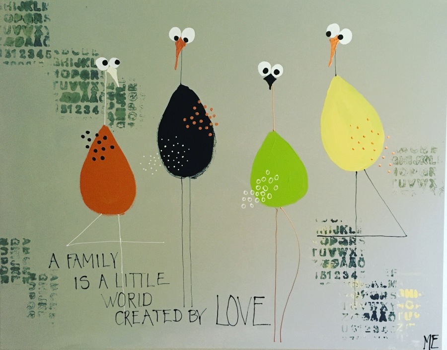 Nr. 42 60x80 Dejlig familie i lækre nuancer med citat
