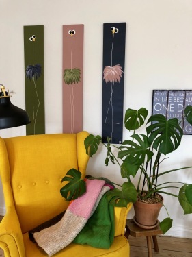Farver kan kombineres i det uendelige, så tænk på, hvor malerierne skal hænge og på hvilke farver, der gør dig glad, så laver jeg et forslag til dig.